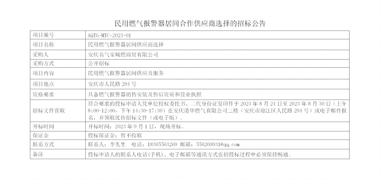 民用燃氣報警器居間合作供應(yīng)商選擇的招標公告