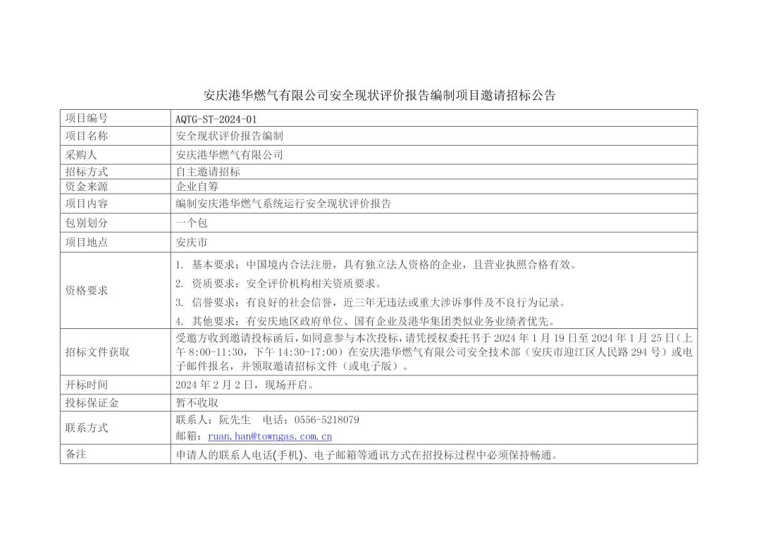 安慶港華安全現(xiàn)狀評價報告編制項目邀請招標(biāo)公告