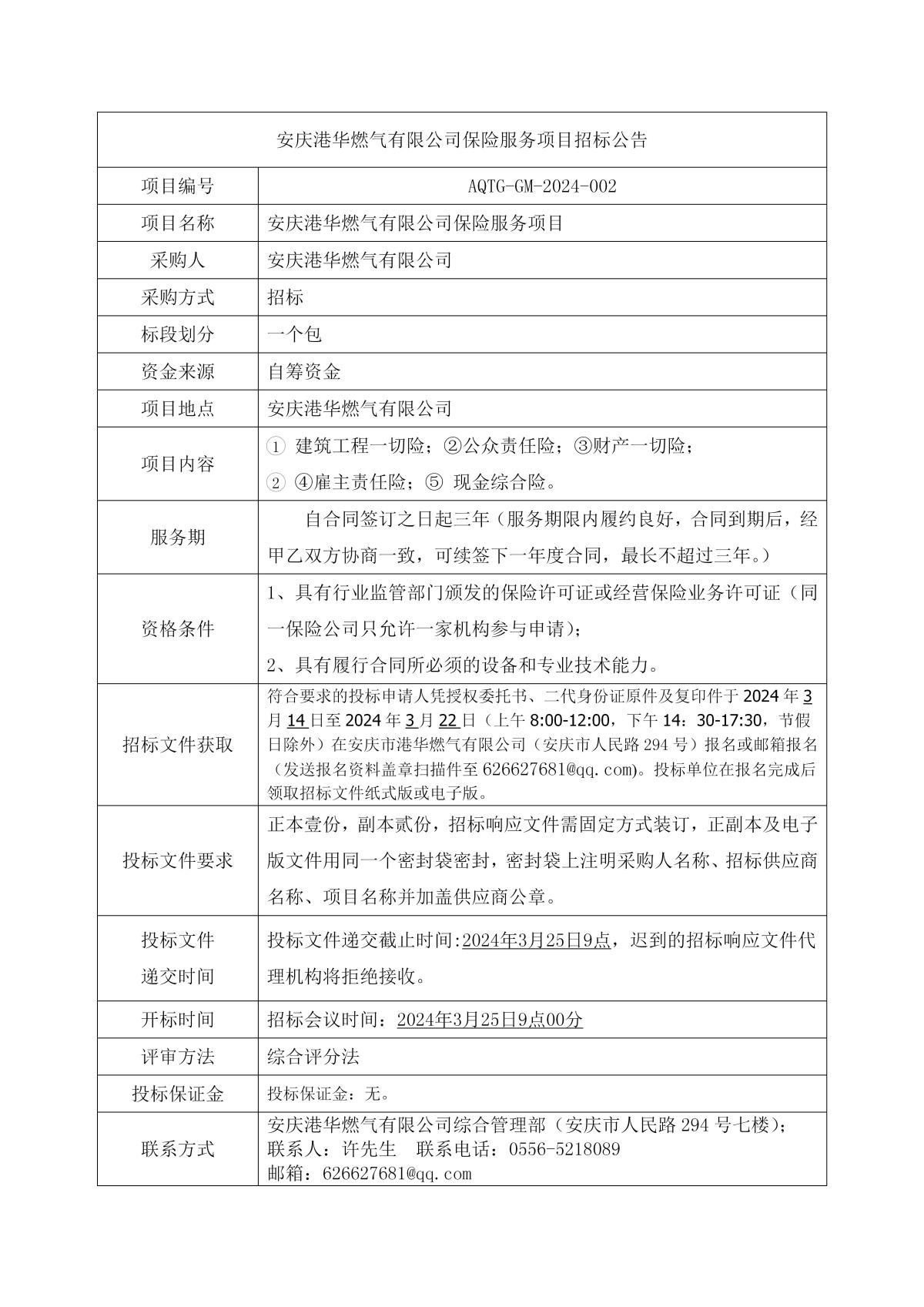安慶港華燃?xì)庥邢薰颈kU服務(wù)項(xiàng)目招標(biāo)公告
